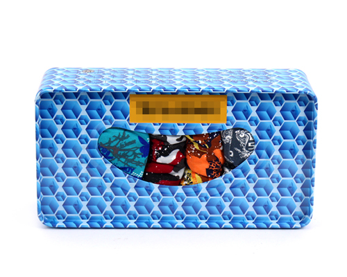 此款家居服飾鐵皮盒,采用UV印刷技術(shù)進行制作。此款家居服飾鐵皮盒,開窗內(nèi)卷線鑼底結(jié)構(gòu)??蛻艨商峁┰O計版面和工藝要求進行制作。