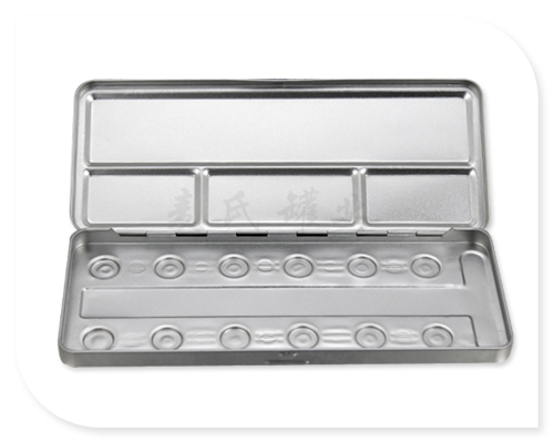 此款化妝品工具鐵盒材質(zhì)為馬口鐵制成,具有密封性和防潮性等特點,鐵盒印刷為單面專色印刷,由于化妝品容易受潮,鐵盒內(nèi)過都涂抹上一層防水的透明油料,還能防止鐵盒的銹蝕。