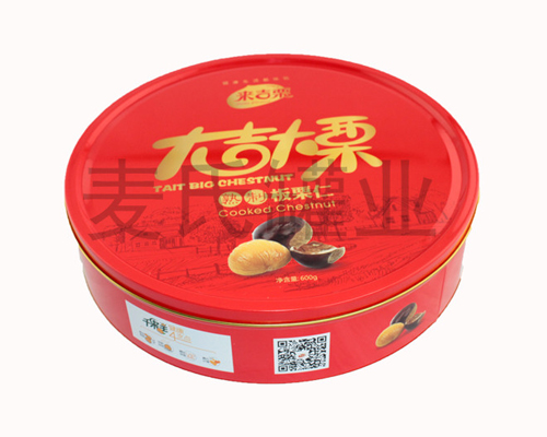 圓形板栗鐵皮盒子(鐵盒子,鐵盒加工,鐵盒廠家)尺寸:285*70mm,麥氏罐業(yè)印鐵制罐廠家為您介紹更多食品鐵盒包裝產(chǎn)品信息、價格以及市場價值。